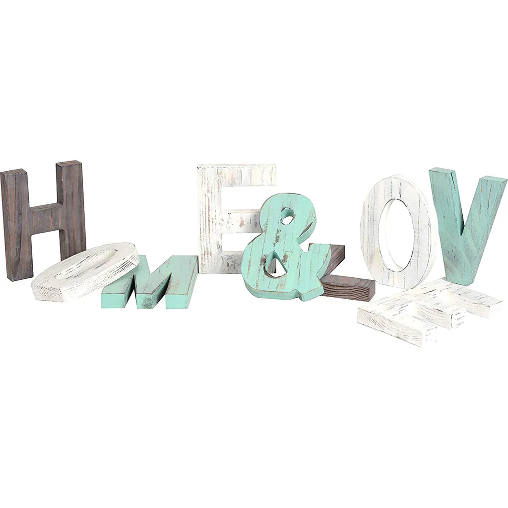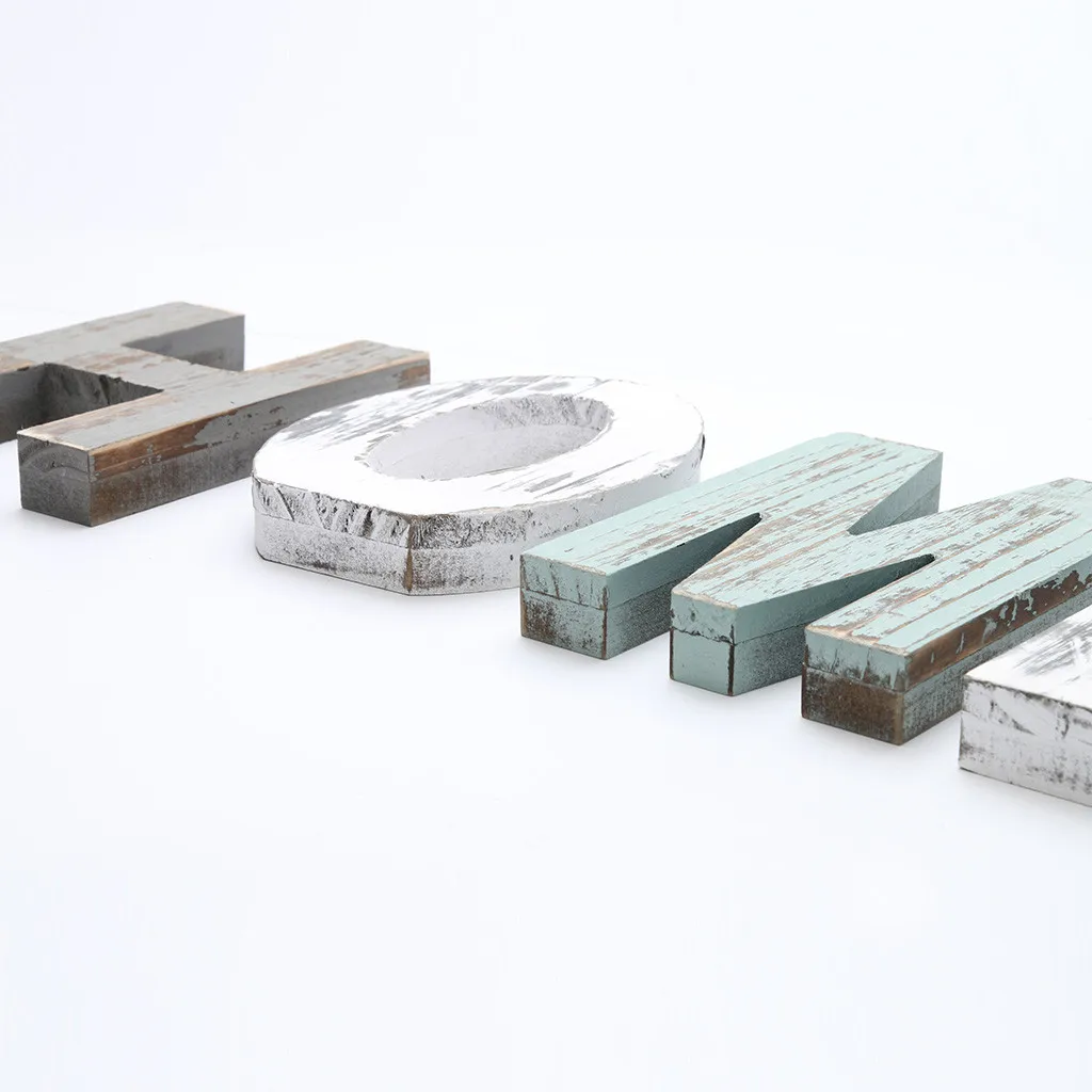 Отдельно стоящий знак, сделанный из вырезанных деревянных букв, которые выделяют слово домой.