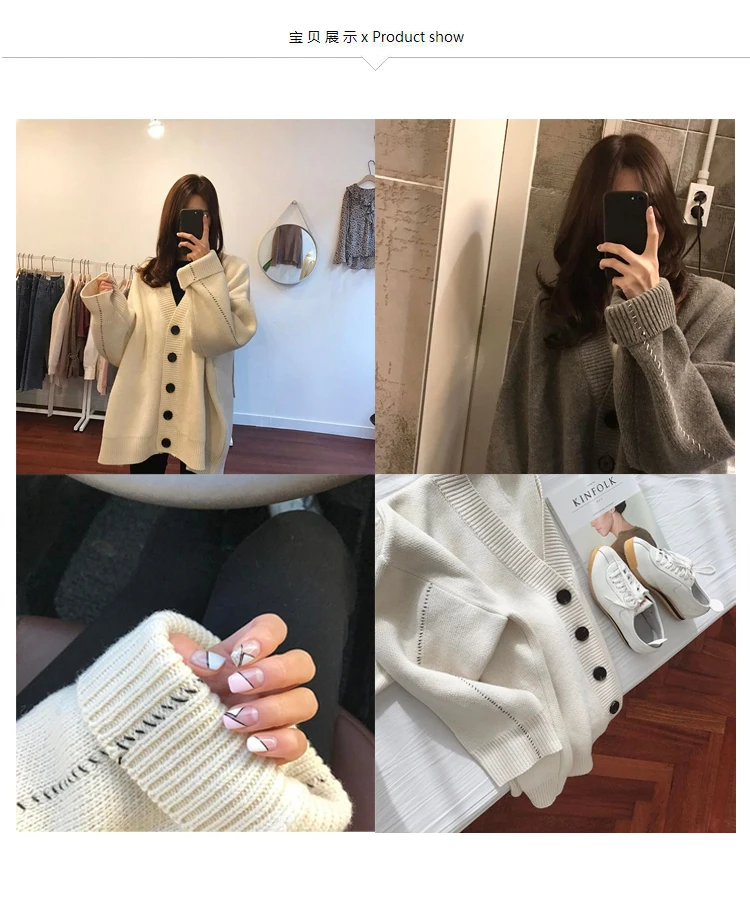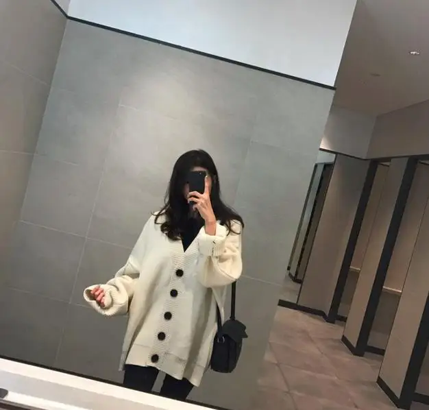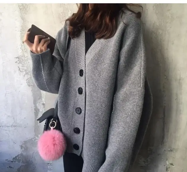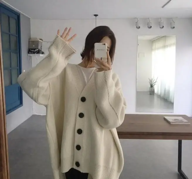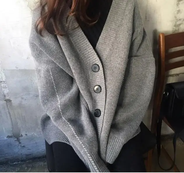 Свободные корейские женские свитера в винтажном стиле; большие размеры; однобортный Кардиган; свитера; однотонные повседневные плотные вязаные свитера