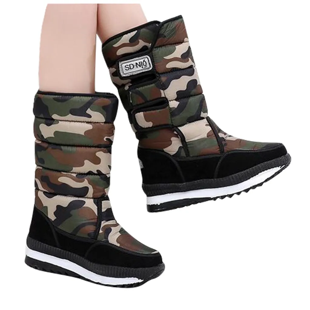 Женские зимние ботинки на танкетке; теплые водонепроницаемые зимние ботинки до середины икры на подкладке
