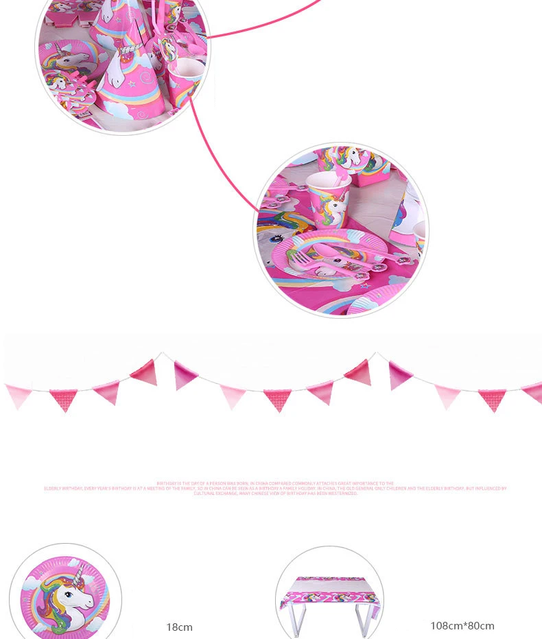 Единорог Декорации для дня рождения одноразовый набор столовых приборов Единорог шары чашки тарелки салфетки Дети День рождения Единорог принадлежности для вечеринок
