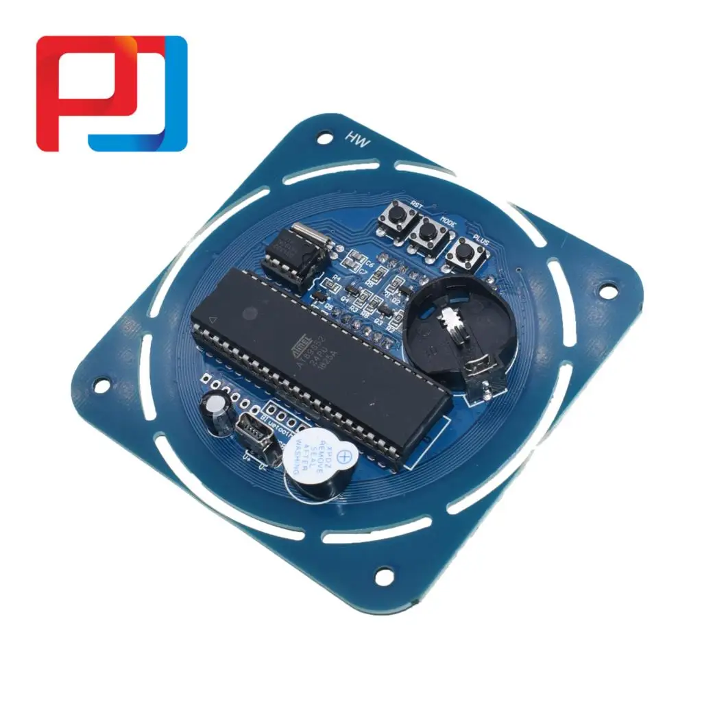Функция: 1. Функция электронных часов. Четыре функции отображения времени цифровой трубки. Каждую секунду, цифровая трубка, две точки на мигающем, в то же время, корпус за пределами часов, светодиодный, включится, чтобы загореть, поворачивается яркой отделкой, круг представляет часы через минуту 2. отображение даты. Через переключатель ключа вы можете увидеть предустановленную дату. Специфическое описание функции клавиш 3. Функция сигнализации. Через кнопочный переключатель вы можете установить функцию будильника. Когда установить время будильника, звуковой сигнал, если нет, вручную выключите зуммер будет продолжать кольцо в течение 10 минут. Специфическое описание функции клавиш 4. Функция сжигания. Резервный буферный интерфейс программы, может изменить на печатную плату для выполнения процедуры, легко работать 5. Функция часов в режиме реального времени. Тон после заданного времени, даже если мощность потеряна, снова после включения питания, не нужно устанавливать время 6. Функция отображения температуры. В режиме отображения времени нажмите кнопку PLUS, может отображать температуру тока 7. Функция отображения многих режимов. Внешний светодиодный дисплей имеет четыре режима, может сотрудничать для добавления ключа, через режим ключа модели 0: также является режимом отображения по умолчанию, все 1-12 часов красный цифровой ламповый свет, когда часы проходят через секунду, зеленая цифровая трубка поворачивается, чтобы осветить a. режим 1: Как часы через секунду, внешнее кольцо светодиодный свет один за другим, то есть 60 секунд, внешнее кольцо все светодиодный свет. В следующую минуту, все светодиоды загораются, и через часы на секунду, выкладывается один за другим. И в следующую минуту светодиоды загораются один за другим, так что чередуются. Режим 2: когда часы через секунду, внешнее кольцо поворачивается, чтобы осветить светодиодный. Первые секунды, только первый светодиодный свет, 2 секунды только второй светодиодный свет. Режим 3: когда часы через секунду, внешний светодиодный выключается a. Первые секунды, только первый светодиодный, только второй светодиодный-2 секунды. Ключевые функции: плюс ключ, для лет, месяцев, дней, часов, минут, секунд добавить работу. В соответствии с числовой суммой 1 в режиме времени, может быть в часах дисплея, переключаться на год, месяц, день, часы, минуты, будильник, регулировка внешнего кольца светодиодный дисплей. Чтобы добавить ключ к году, месяц, день, часы, минуты, секунды и режим отображения, чтобы настроить RST ключ, нажмите кнопку сброса, затем MCU сброс Спецификация: Размер: 81 мм x 81 мм x 1,6 мм толщина печатной платы: 1,6 мм Материал: FR4 военный уровень цвет печатной платы: Синий цифровой трубчатый Дисплей: красный источник питания напряжение: мини-usb, внешнего соединения 5 В, 3 в кнопочный Аккумулятор для чипа часов на плате резервный источник питания