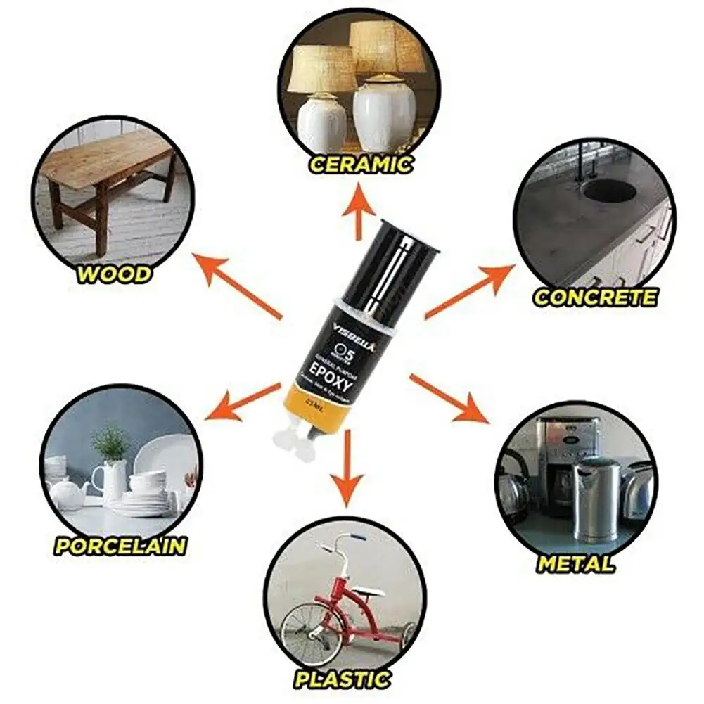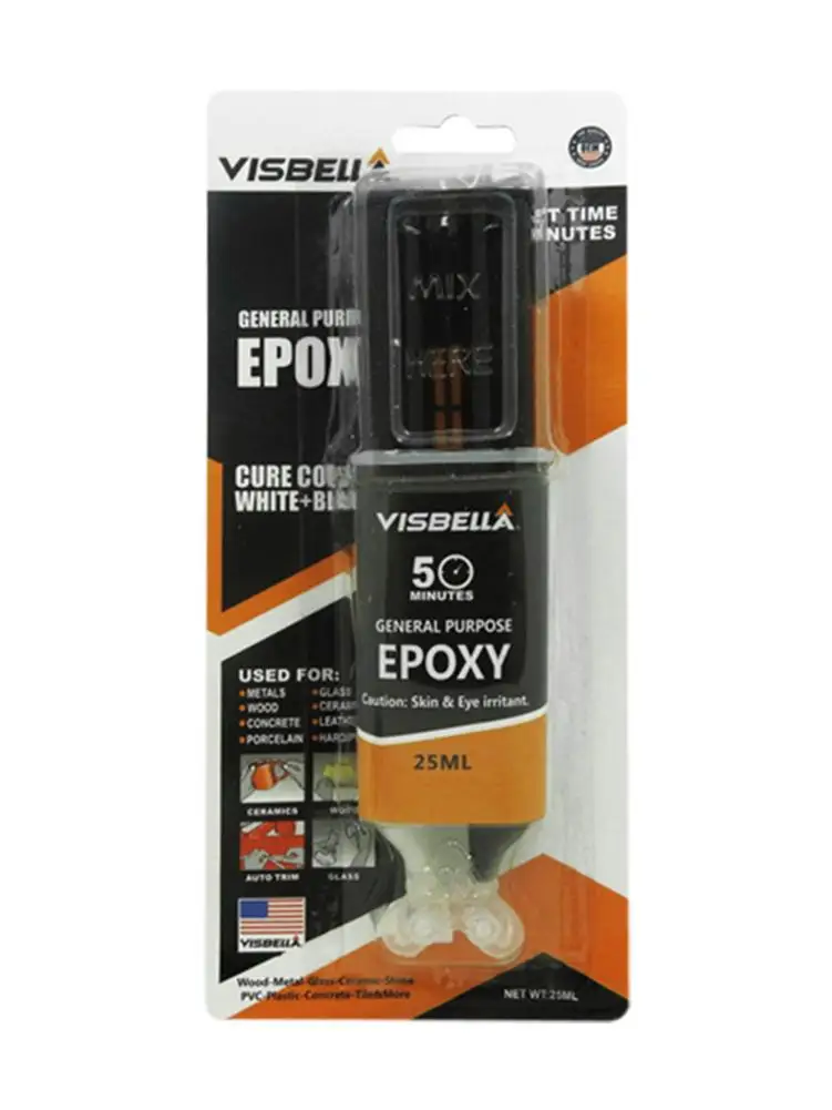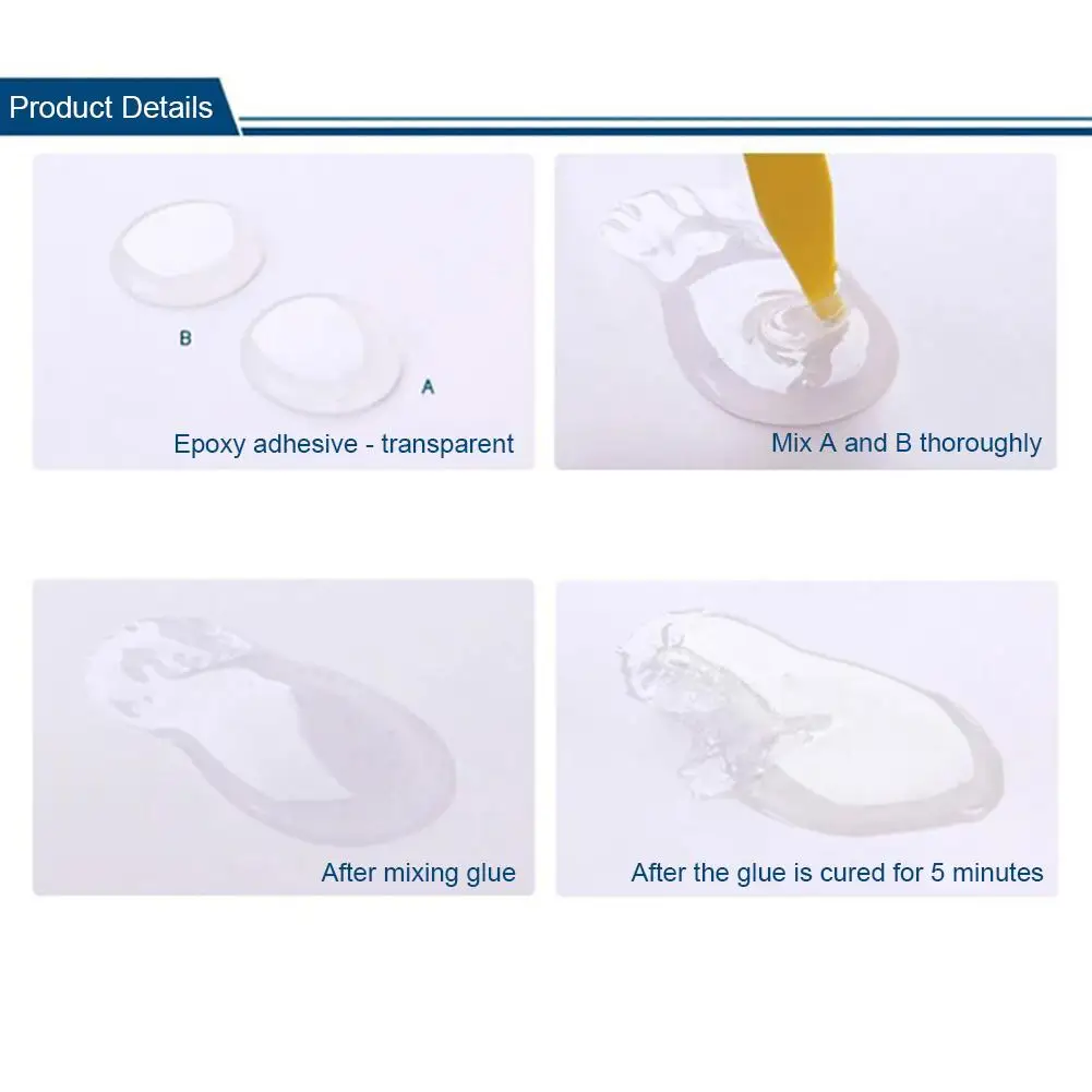 1. Двухкомпонентный клей: шприц эпоксидный клей AB Клей-это двухкомпонентный клей, состоящий из эпоксидной смолы и отвердителя.