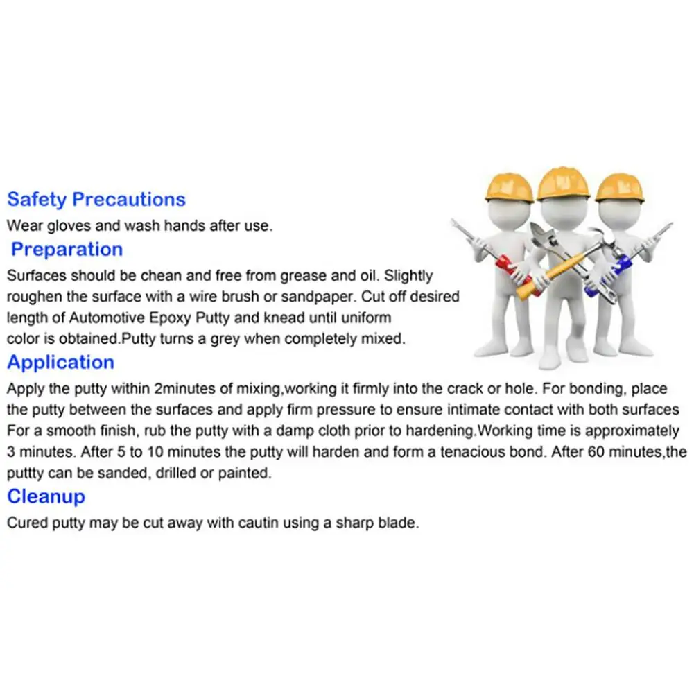 Для гладкой отделки протрите шпатлевка влажной тканью перед закалкой. Время работы составляет приблизительно 3 минуты. Через 5-10 минут шпатлевка затвердеет и образует tenacious связь. Через 60 минут шпатлевка может быть отшлифована, просверлена или окрашена.Полиэтилен, полипропилен, нейлон, тефлон или гибкие материалы.
