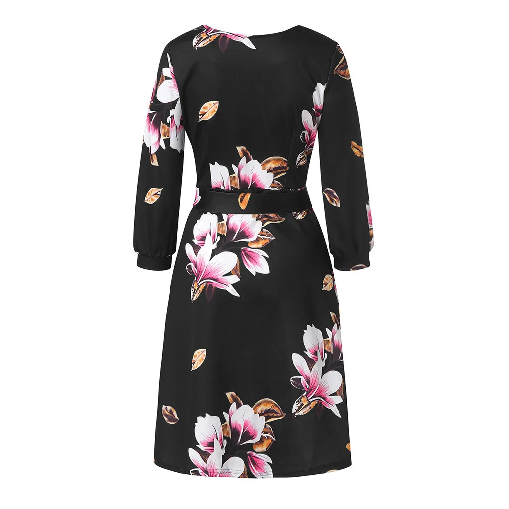 Стиль: женское сексуальное длинное платье с длинным рукавом, v-образным вырезом и цветочным принтом