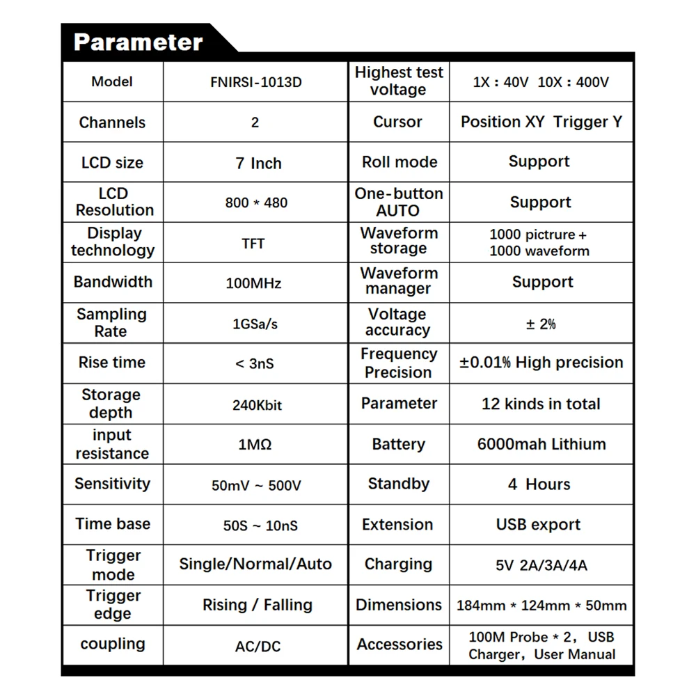 2 * соответствующий зонд 100 МГц (1X и 10X)