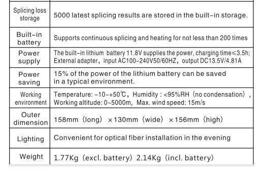 Светильник отличается весом, прост в переноске и удобен в эксплуатации, быстрой скоростью сращивания и низкими потерями, он особенно подходит для проектов волоконно-оптических кабелей, технического обслуживания научных исследований и обучения
