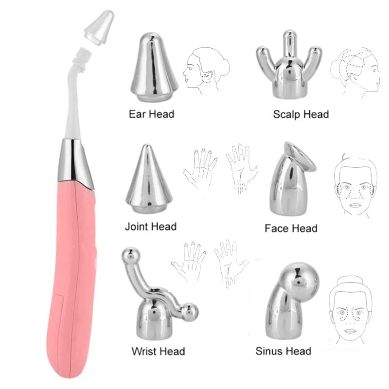Тип изделия: 6 в 1 массажер для уха/головы/лица/запястья/синуса/суставного массажа Размер: как показано на картинке Тип батареи: 2 * AAA батареи (не включены) Цвет: розовый Вес: 58 г