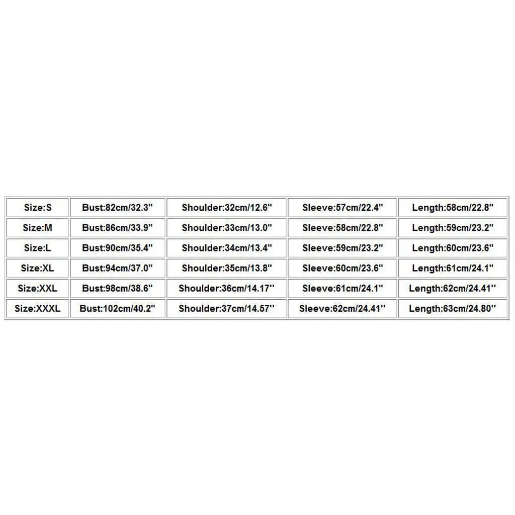 Размеры Бюст Плечо Рукав Длина S 82 см/32,3 дюйма 32 см/12,6 дюйма 57 см/22,4 дюйма 58 см/22,8 дюйма М 86 см/33,9 дюйма 33 см/13,0 дюйма 58 см/22,8 дюйма 59 см/23,2 дюйма L 90 см/35,4 дюйма 34 см/13,4 дюйма 59 см/23,2 дюйма 60 см/23,6 дюйма XL 94 см/37,0 дюйма 35 см/13,8 дюйма 60 см/23,6 дюйма 61 см/24,1 дюйма XXL 98 см/38,6 дюйма 36 см/14,17 дюйма 61 см/24,1 дюйма 62 см/24,41 дюйма XХХL 102 см/40,2 дюйма 37 см/14,57 дюйма 62 см/24,41 дюйма 63 см/24,80 дюйма