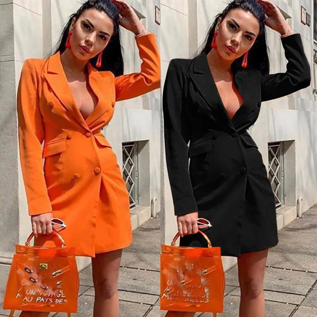 Женское двубортное короткое платье в стиле милитари с пуговицами спереди