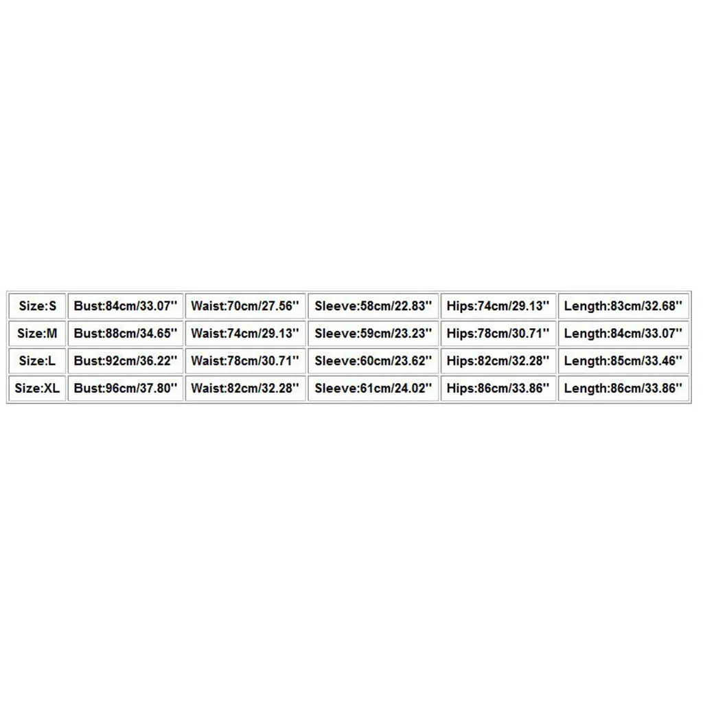 Размер: SОбхват груди: 84 см/33,07 дюймаТалия: 70 см/27,56 дюймаРукав: 58 см/22,83 дюймаБедра: 74 см/29,13 дюймаДлина: 83 см/32,68''Размер: MОбхват груди: 88 см/34,65 дюймаТалия: 74 см/29,13 дюймаРукав: 59 см/23,23 дюймаБедра: 78 см/30,71 дюймаДлина: 84 см/33,07 дюймаРазмер: LОбхват груди: 92 см/36,22 дюймаТалия: 78 см/30,71 дюймаРукав: 60 см/23,62 дюймаБедра: 82 см/32,28 дюймаДлина: 85 см/33,46''Размер: XLОбхват груди: 96 см/37,80 дюймаТалия: 82 см/32,28 дюймаРукав: 61 см/24,02 дюймаБедра: 86 см/33,86 дюймаДлина: 86 см/33,86''