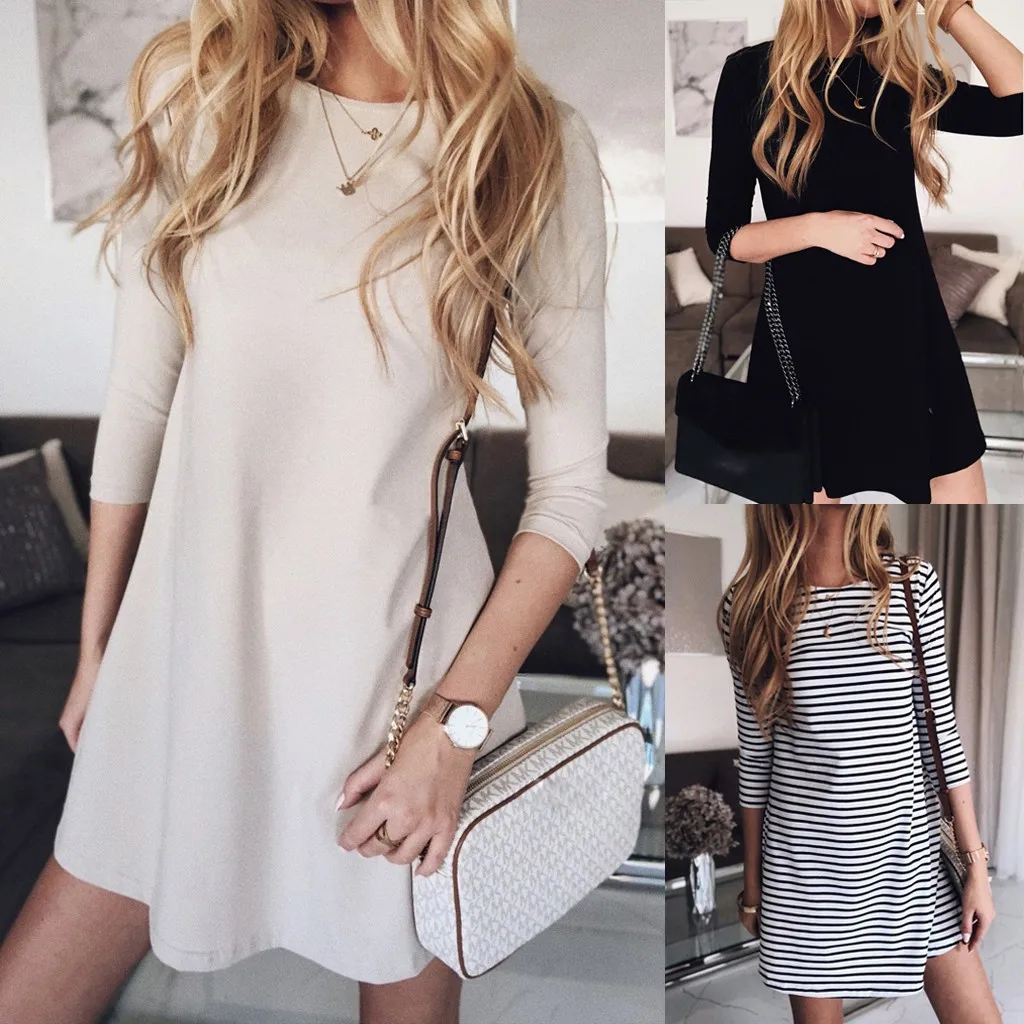 ❤Особенности: длинный рукав, круглый вырез, свободный крой, выше колена, повседневные милые весенне-летние платья-футболки.