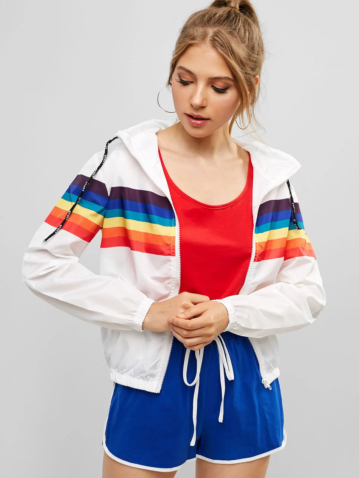 ZAFUL, весенне-осенняя толстовка, ветровка, куртка, женская, Радужная, на молнии, с карманами, с капюшоном, пальто, повседневная, с длинным рукавом, базовые куртки
