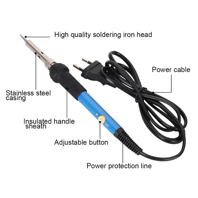 Набор для паяльника 5 шт.: 1 шт., паяльник 5 шт., наконечники для паяльника 1 шт., канифола 1 шт., железная подставка 1 шт., губка 1 шт.