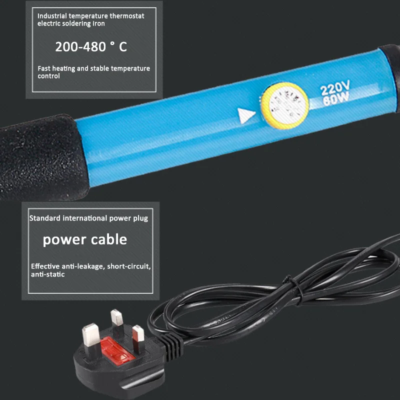 1. Нагрев быстро: Паяльник 110 В/220 В 60 Вт оснащен передовым нагревателем для быстрого нагрева до заданной температуры, а диапазон регулируемых температур-от 100 до 450 °.