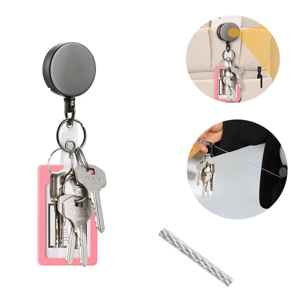 NON-хрупкие шнур: 27.5in шнур из стальной проволоки, что намного прочнее и дольше, чем в обычном режиме 24 дюйма нейлон утягивающим шнурком и другие предметы. Разблокировка дверей и доступ в офис-это ветерок с этим выдвижным значком катушки.
