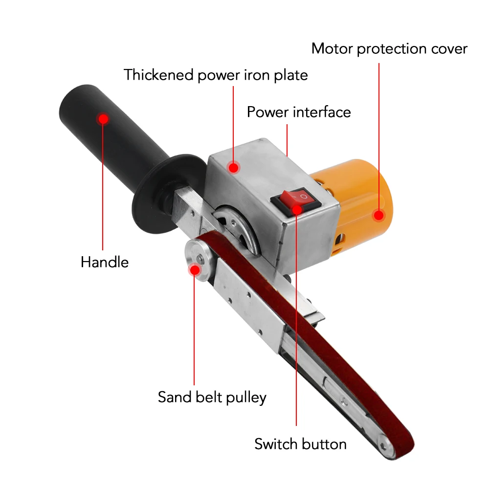 Вы все еще беспокоитесь об этих проблемах: Структура продукта сложная и трудно полировать, ленточная машина громоздкая и неудобна для переноски, эффект шлифовки неровный, и не безопасно полировать. Если у вас все еще возникают эти проблемы, то настанет время попробовать эту ленточную машину.
