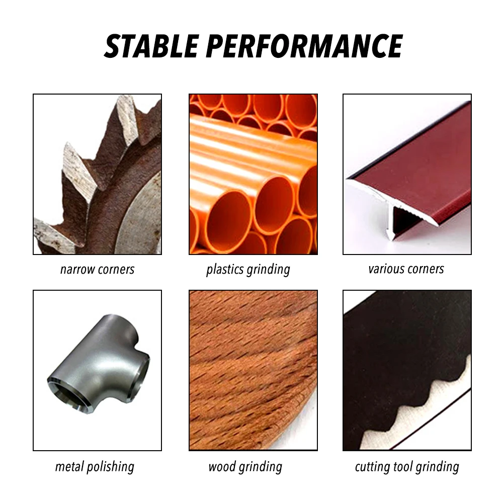 Подходит для узких углов, шлифования пластмасс, различных углов, полировки металла, шлифования древесины, резки инструмента шлифования и т. Д.