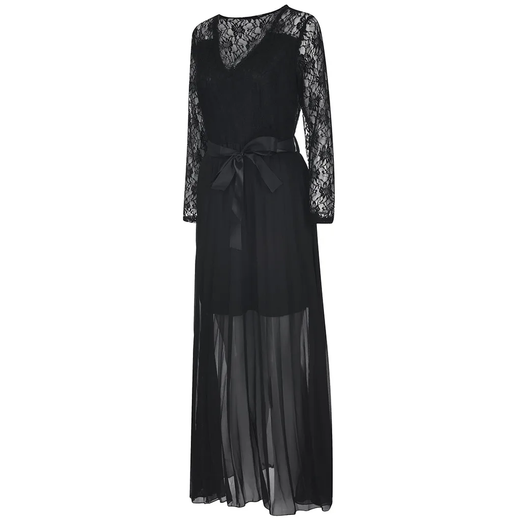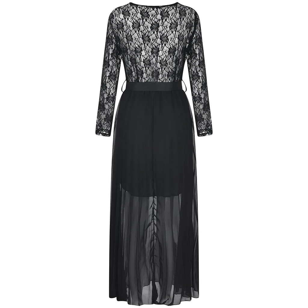 Женские свободные сплошные кружевные лоскутные платья на молнии с длинным рукавом длиной до щиколотки