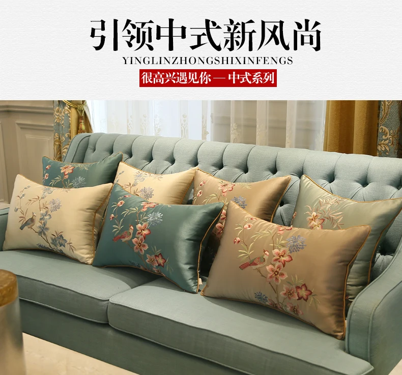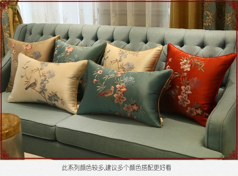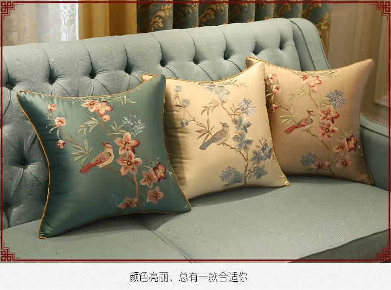 Бесплатная доставка Классическая вышивка синяя птица подушка с внутренней подушкой сатиновая Подушка кресло-Подушка декоративная для подарка 30X50/45x45/50X50/40X60 см