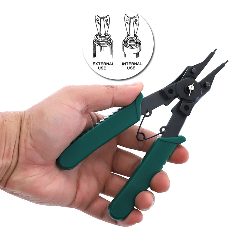 Стопорные плоскогубцы используется для разборки и сборки стопорных колец. В основном используется для сборки и обслуживания машин, автомобилей, тракторов и двигателей внутреннего сгорания.