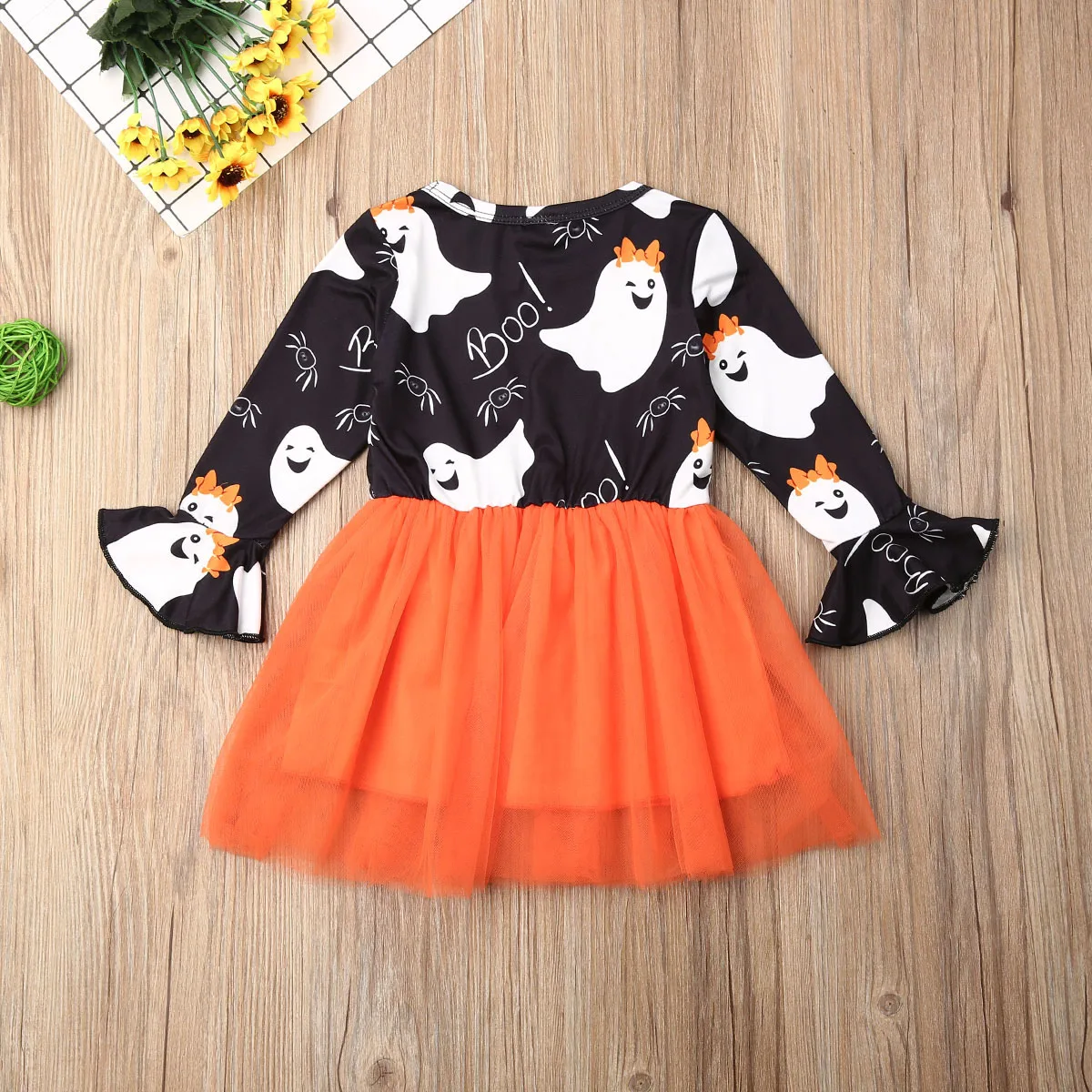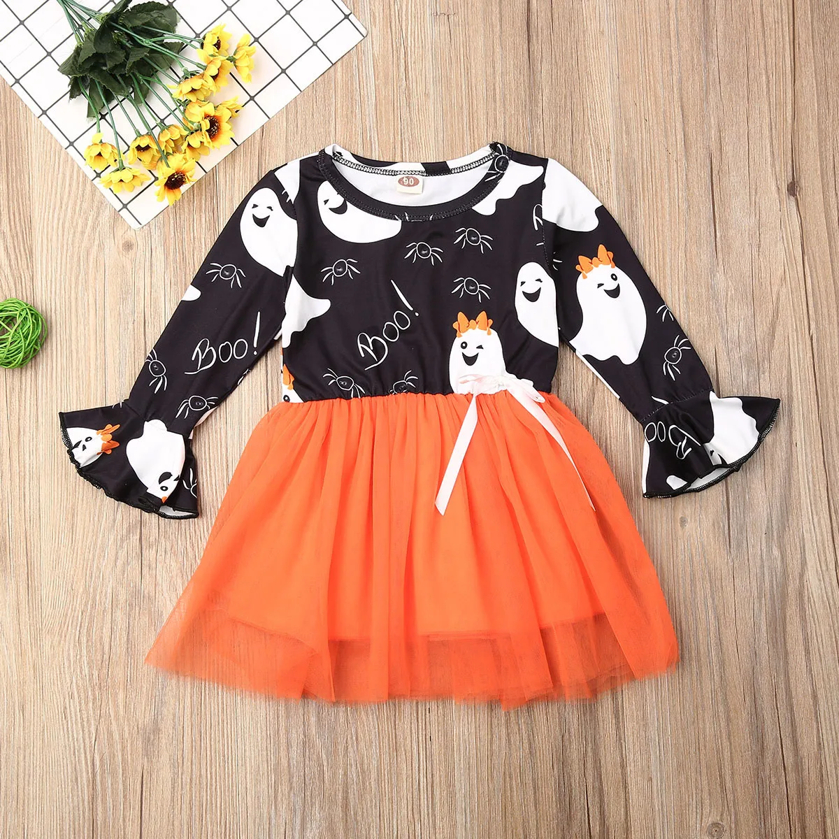 Новинка; Платье для маленьких девочек на Хэллоуин; Платье принцессы с длинными рукавами и оборками; Платье с бантом!