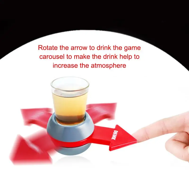 Все, что вам нужно сделать, это заполнить рюмку (не входит в комплект) чем-то алкоголиком, поместите ее в середину спиннера со стрелкой,Людям, которые заострены стрелкой, нужно очистить стекло.