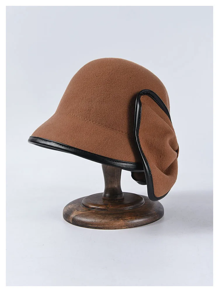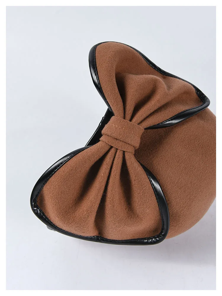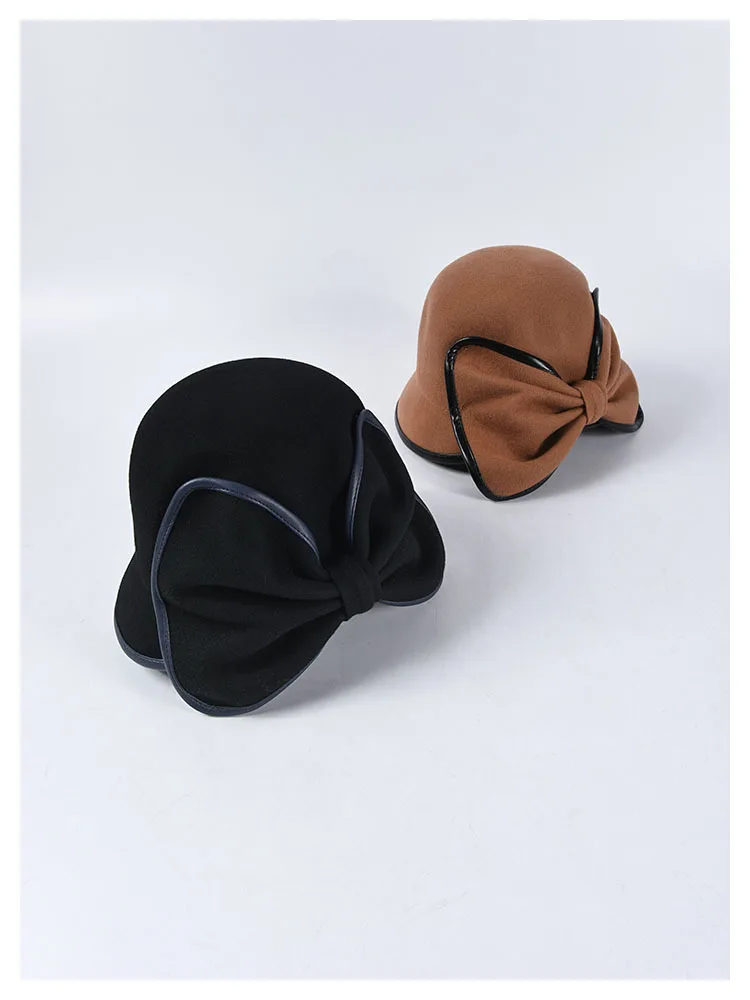 Женская шерстяная шляпа Fedora, водная декоративная шляпа с галстуком-бабочкой, женский шерстяной берет, женская зимняя элегантная шапка