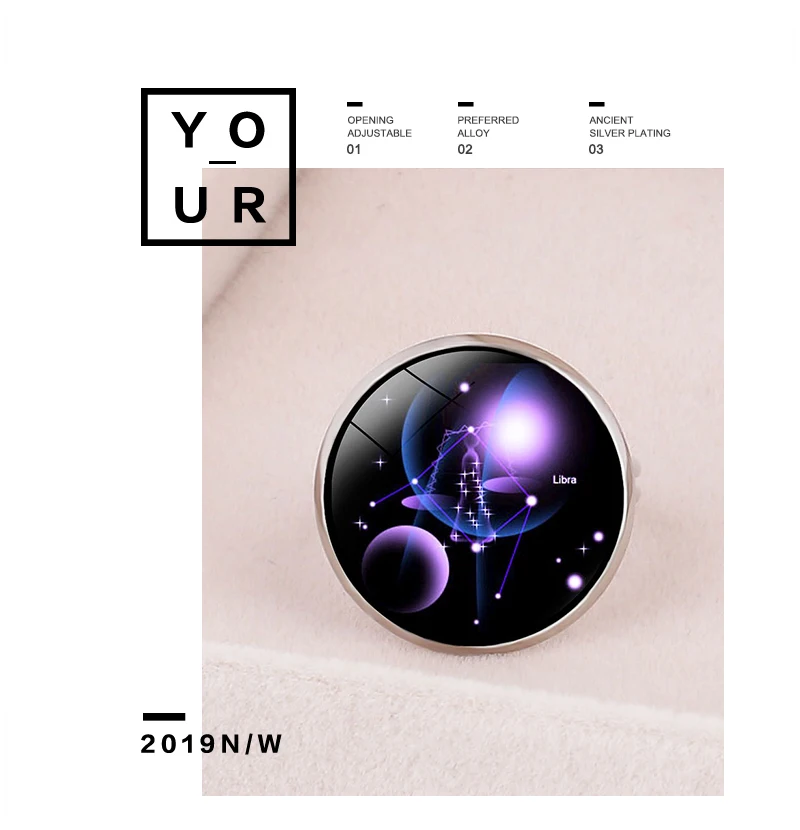 Описание товара Название: Изысканные кольца для женщин; Новый модный тренд; Двенадцать созвездий; Узор из стекла; Регулируемые открытые металлические кольца унисекс Модель: T8291 Материал: железо Подарок для: женщины, любовника, друга, себя Цвет: серебристый