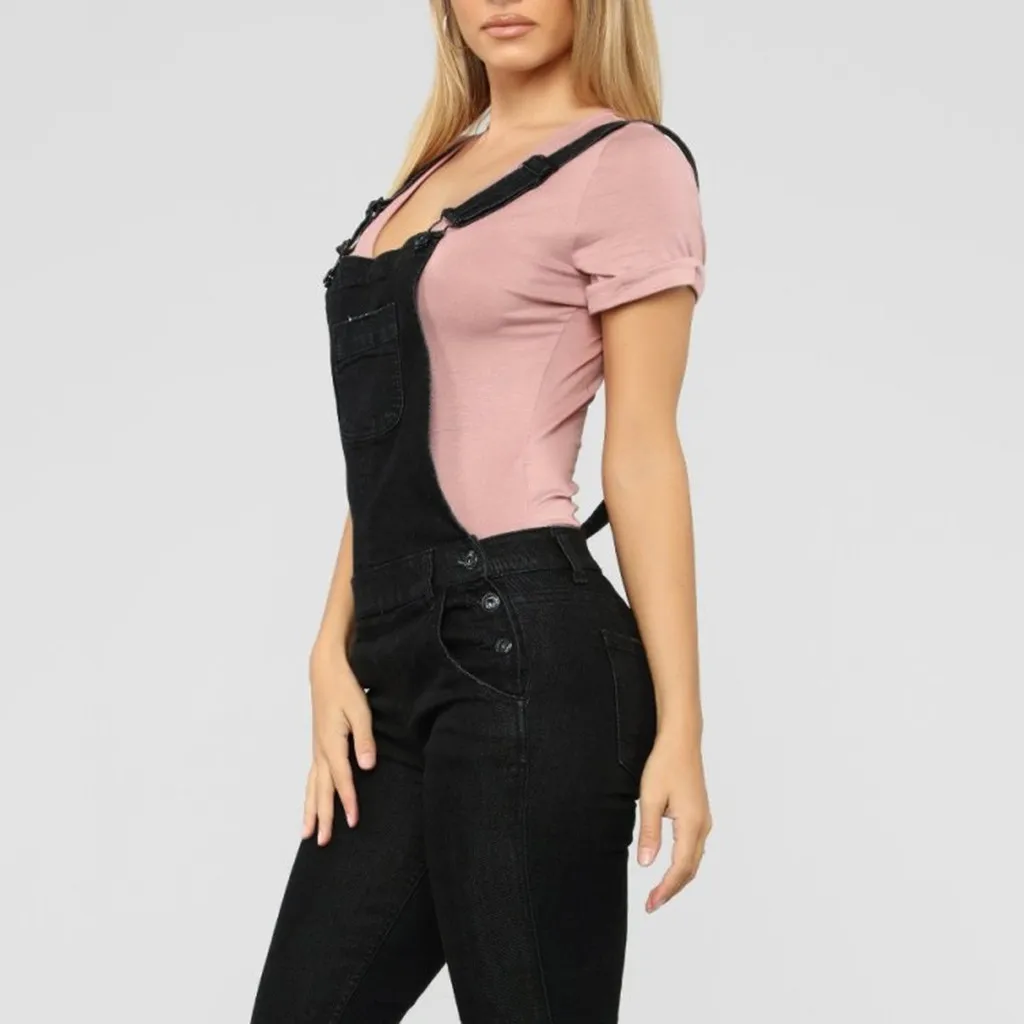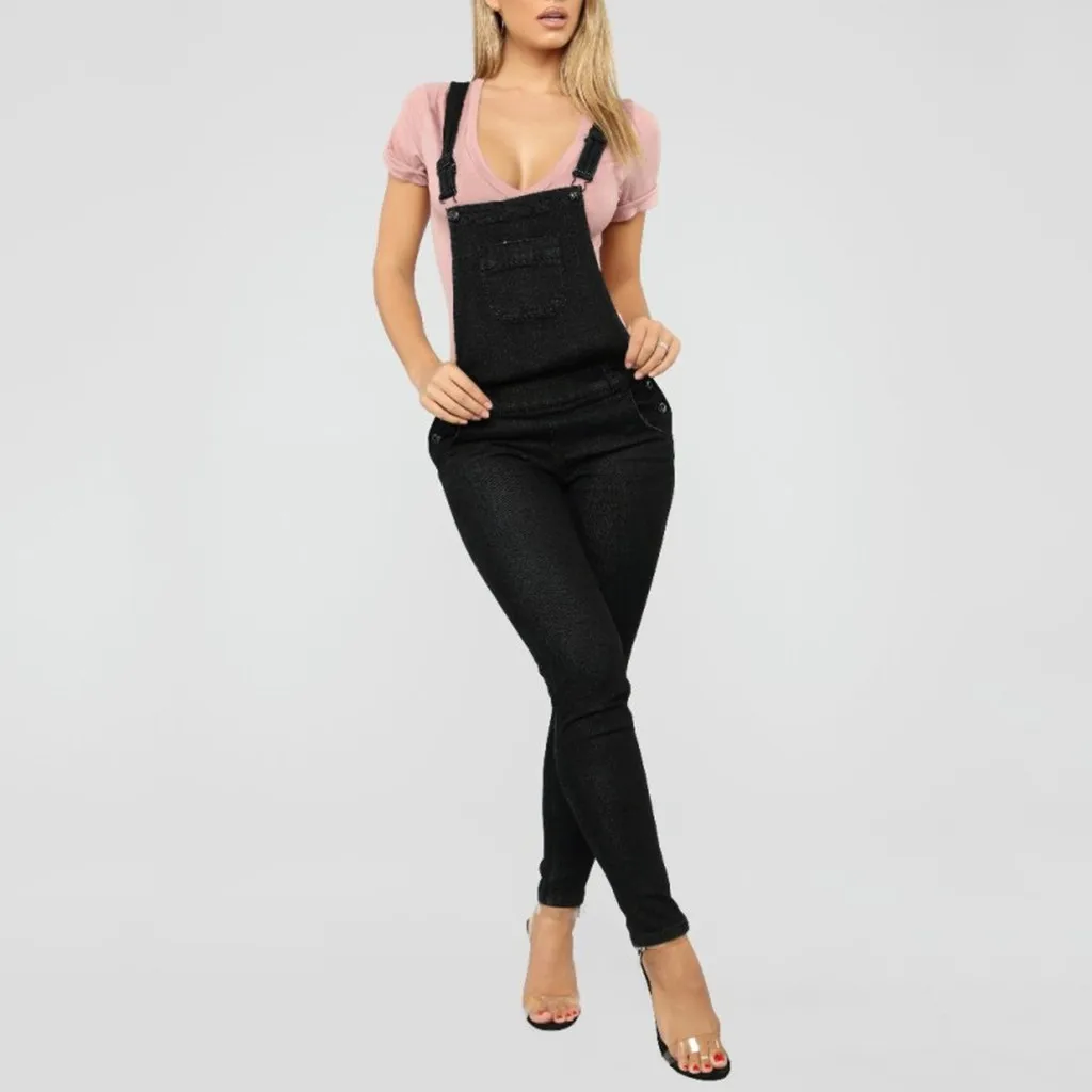 Женский модный джинсовый комбинезон с карманами, сексуальный длинный комбинезон, комбинезон