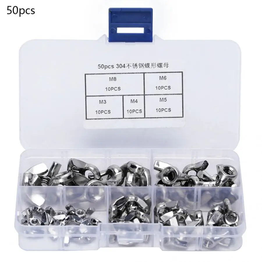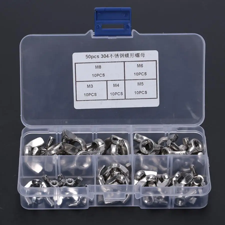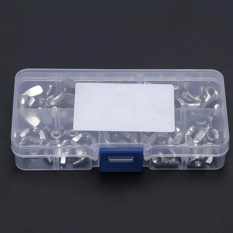 В набор входят отдельно 5 различных видов гаек м3, М4, М5, М6, М8.