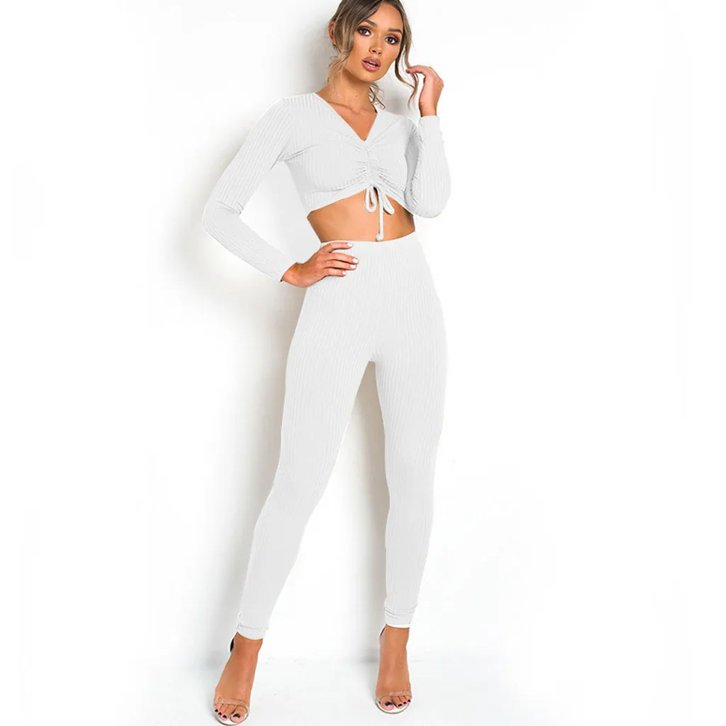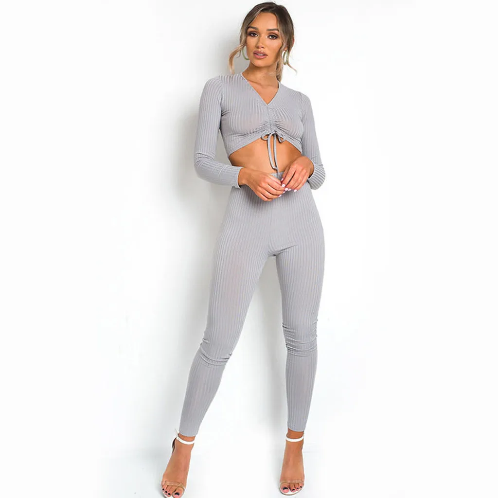 Особенности: длинный рукав, V-образный вырез, БандажСексуальный комплект с брюкамиПовседневная одежда,Уличная одежда,СексуальныйКомплект.