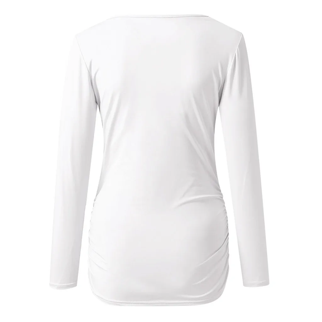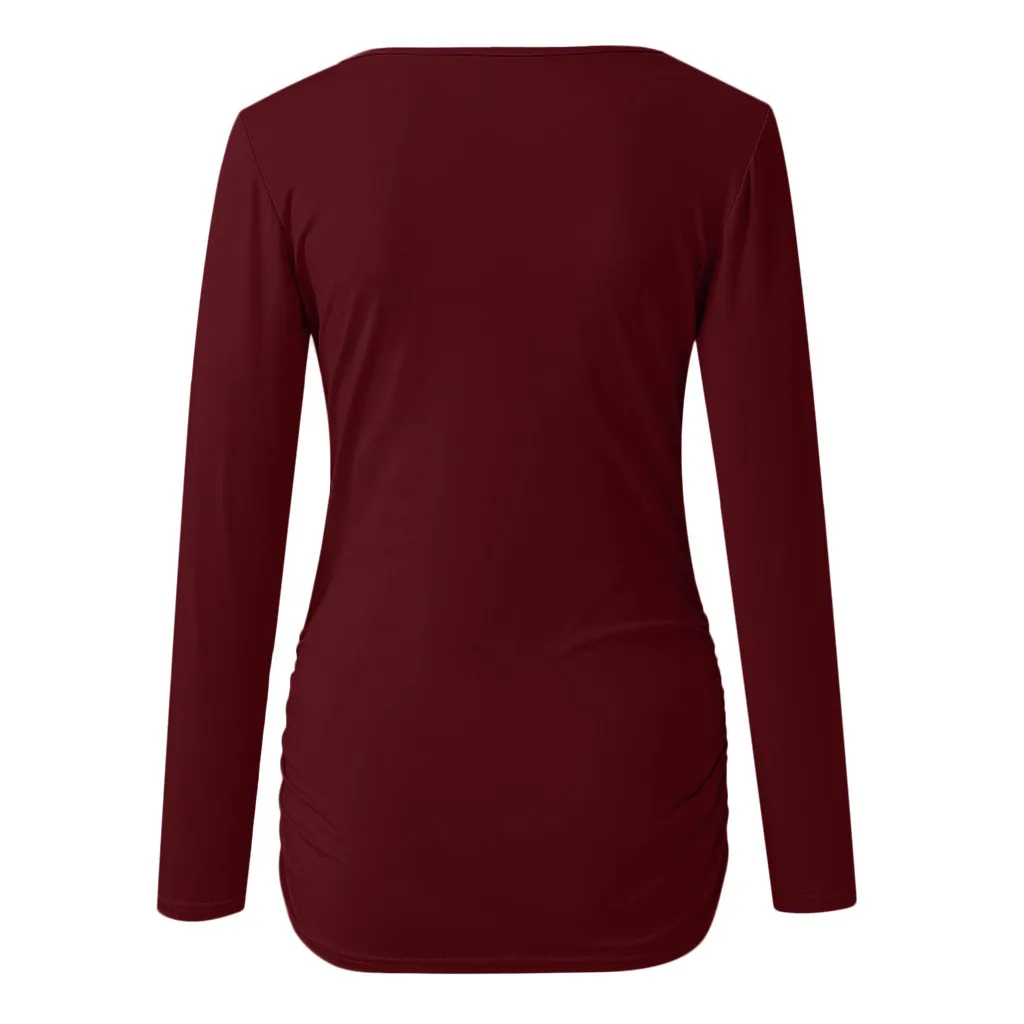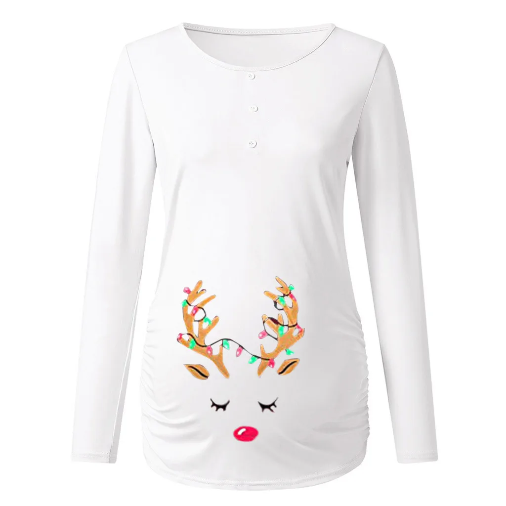 Женская рождественская рубашка с принтом и пуговицами для беременных, топ с длинными рукавами, Футболка для беременных