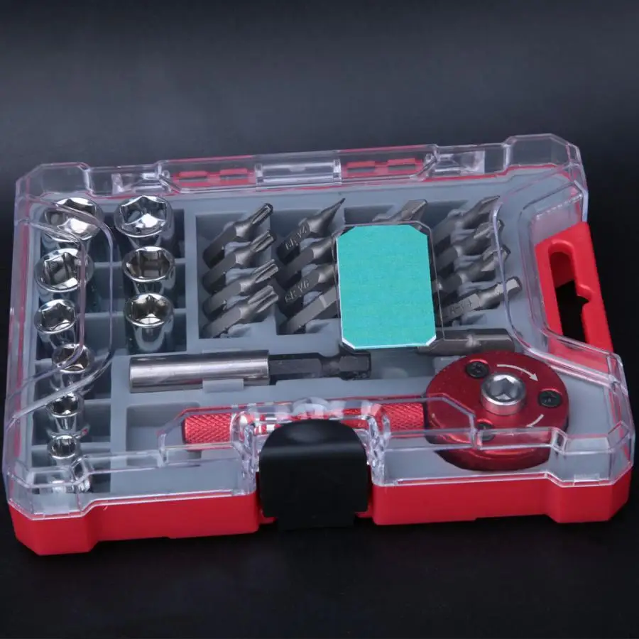 Приводная головка отвертки имеет встроенное храповое устройство, удобное и экономичное. Нескользящая накатанная алюминиевая ручка обеспечивает комфортное удержание и лучший контроль. Розетки и биты изготовлены из стали, высокой твердости, износостойкости и стойкости. Удлинительный стержень позволяет отвертке во внутреннюю часть машины для ремонта. Этот набор поставляется с несколькими размерами гнезд и бит для удовлетворения ваших потребностей. Все инструменты хранятся в прозрачной пластиковой коробке, чтобы держать их аккуратно организованными и удобными в переноске.