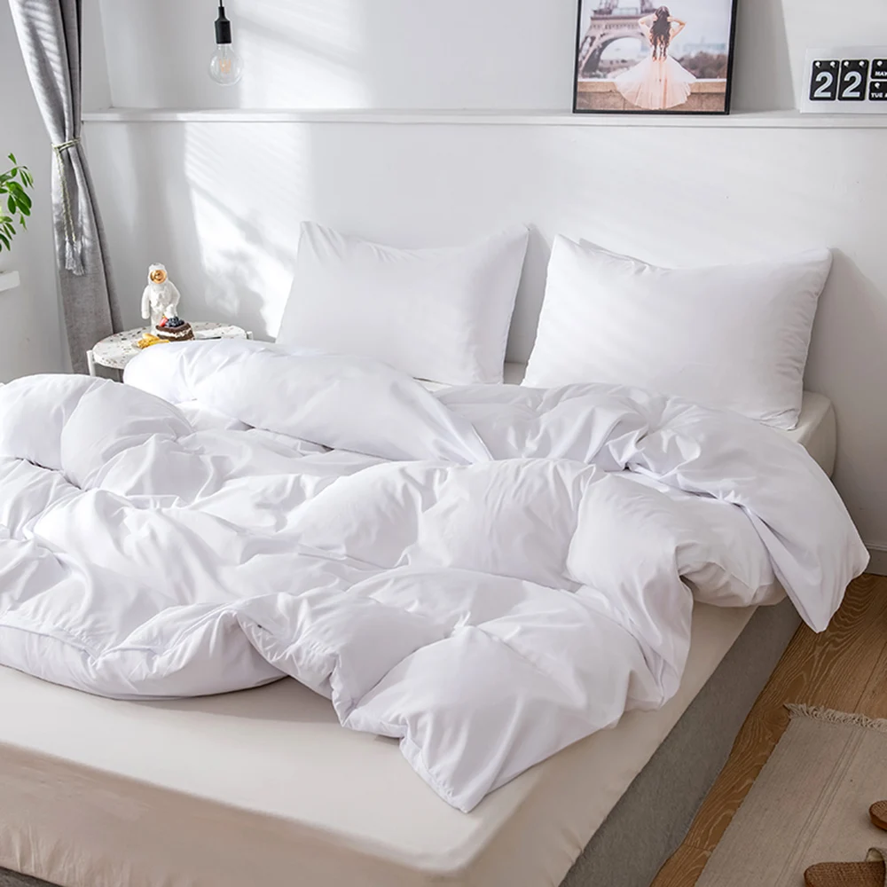 Трехкомпонентный Комплект постельного белья-это современный стиль, чистый цвет и классический высококачественный. Превосходный материал Дакрон. Стеганый шов и реактивные красители. Высокая чистота, длинная стирка не выцветает. Шлифовальный внешний вид, мягкий, теплый, удобный, не выцветает, не скатывается.