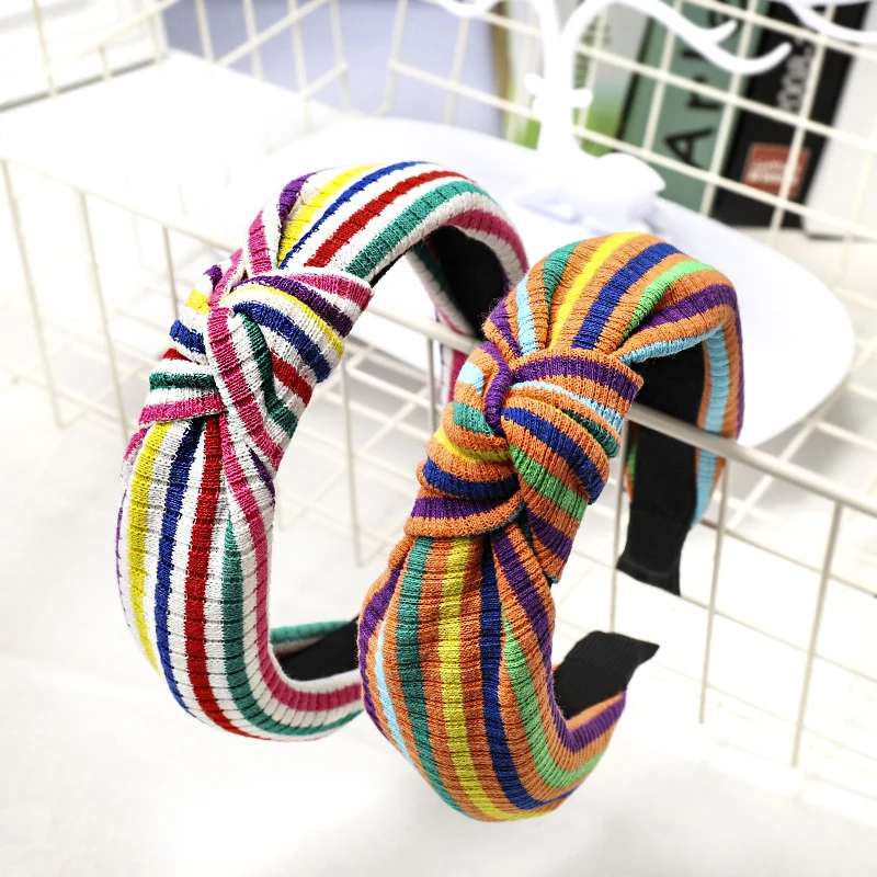 Радужная полосатая повязка на голову крест Топ узел обруч для волос пэчворк Бохо для волос аксессуары