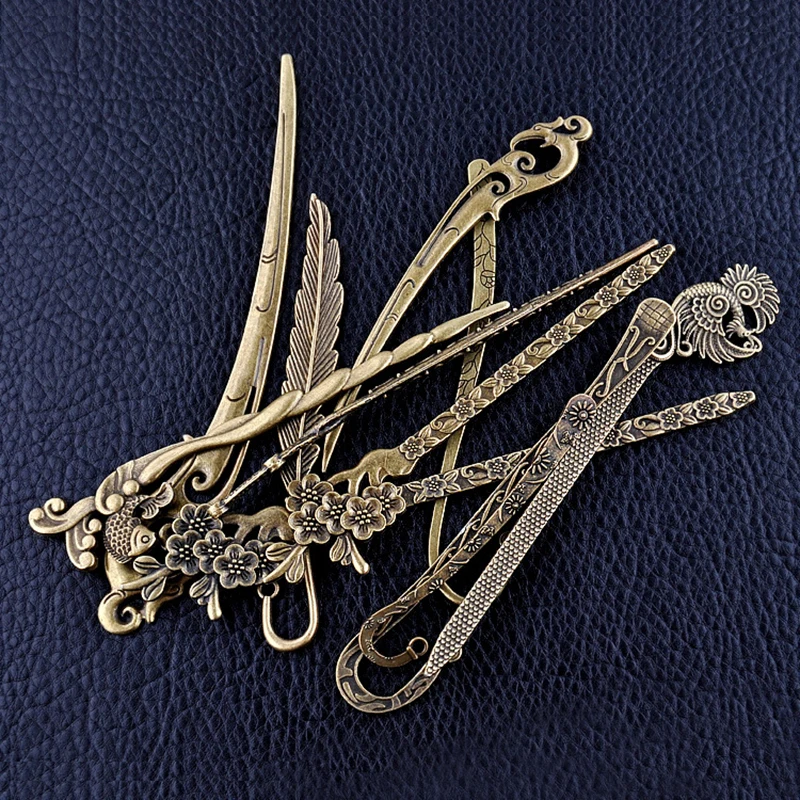 Бронзовые винтажные шпильки для волос, китайские традиционные резные шпильки для волос из сплава