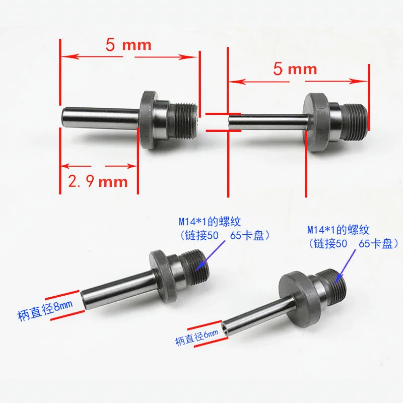 Название: патрон для электрической дрели, соединительный стержень Резьба соединительного стержня патрона: M14X1 Материал: сталь 45 # Диаметр хвостовика: 8 мм, 6 мм Технология обработки: шлифовальный станок, точное шлифование Название: патрон с 50 зубцами Диаметр: 50 мм Толщина: 44 мм Диапазон положительных зажимов: Минимальный 4 мм, максимальный 22 мм Диапазон зажима обратного зажима: минимальный 22 мм, максимальный 50 мм Название: 65 патронов Диаметр: 65 мм Толщина: 44 мм Диапазон зажима положительного зажима: Минимальный 4 мм, максимальный 30 мм Диапазон зажима обратного зажима: не менее 30 мм, максимум 65 мм