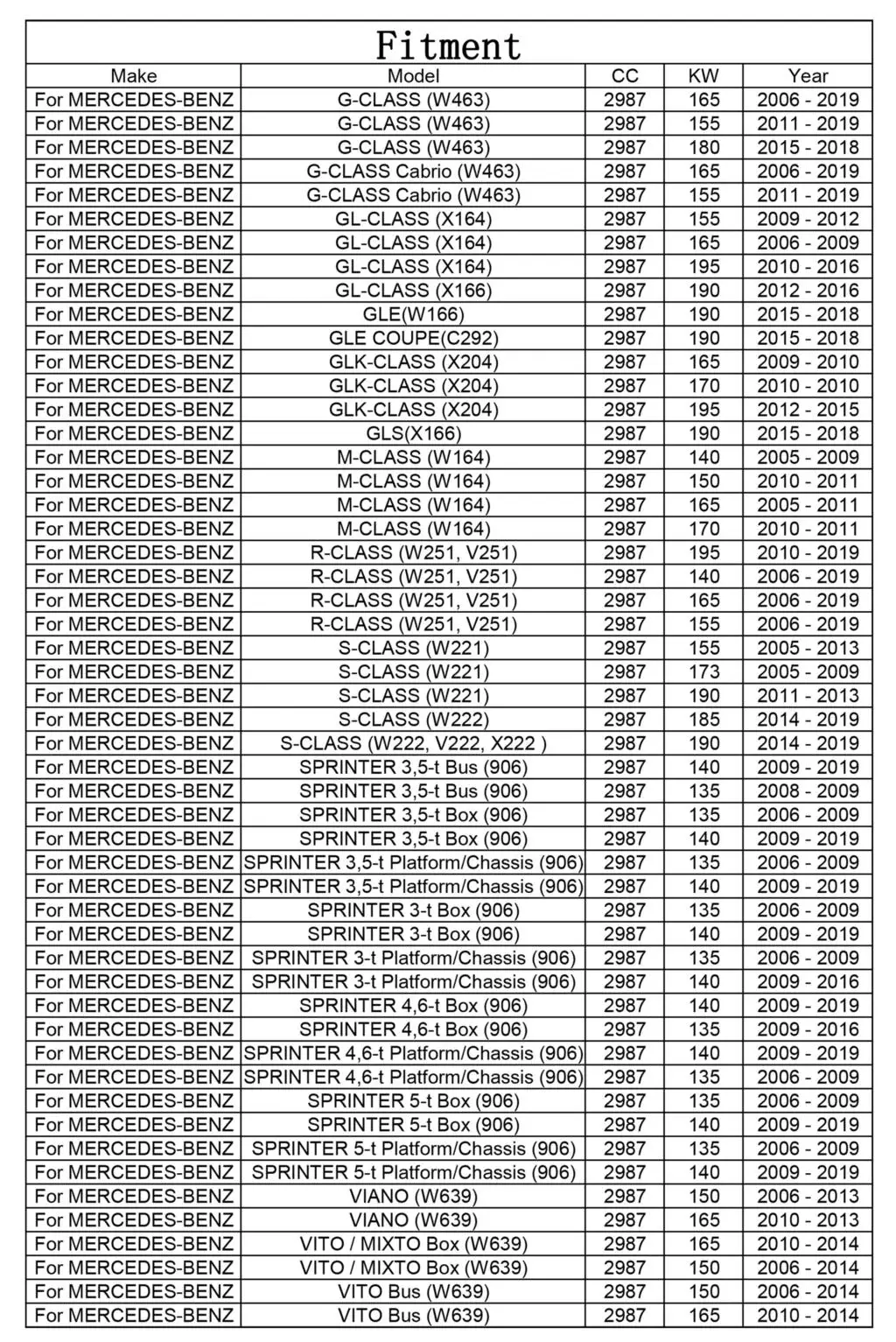 Применимость: пожалуйста, посмотрите таблицу совместимости или изображение Fitment.