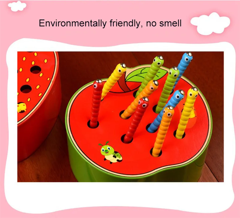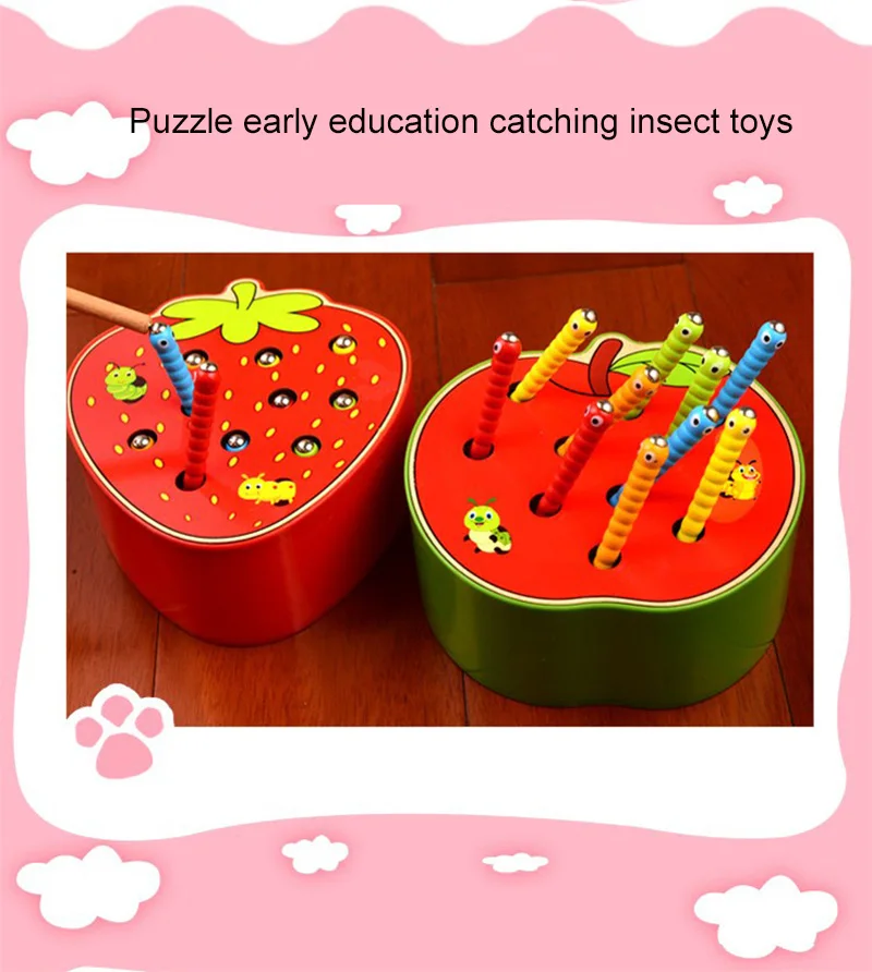 Развивающая детская игрушка, деревянный магнитный 3D-пазл для раннего развития в виде клубники или яблока