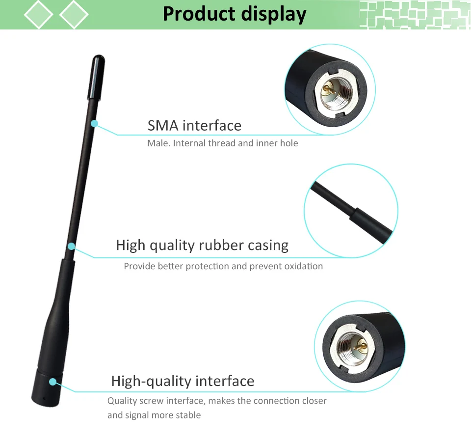 Позолоченные прямые стержневые антенны до 433 МГц беспроводной цифровой/специальный метр считывания системы связи дизайн антенны. Производительность коэффициента стоящей волны антенны хорошая, малый размер, структура, простая установка, стабильная производительность, имеет очень хорошую антивибрацию и старение. Частота: 433 МГц Размер: d13.8x175мм усиление: 2 ~ 3 Разъем: SMA Мужской VSWR: <= 1.5 Вес: 8,6 г Поляризация: вертикальная поляризация