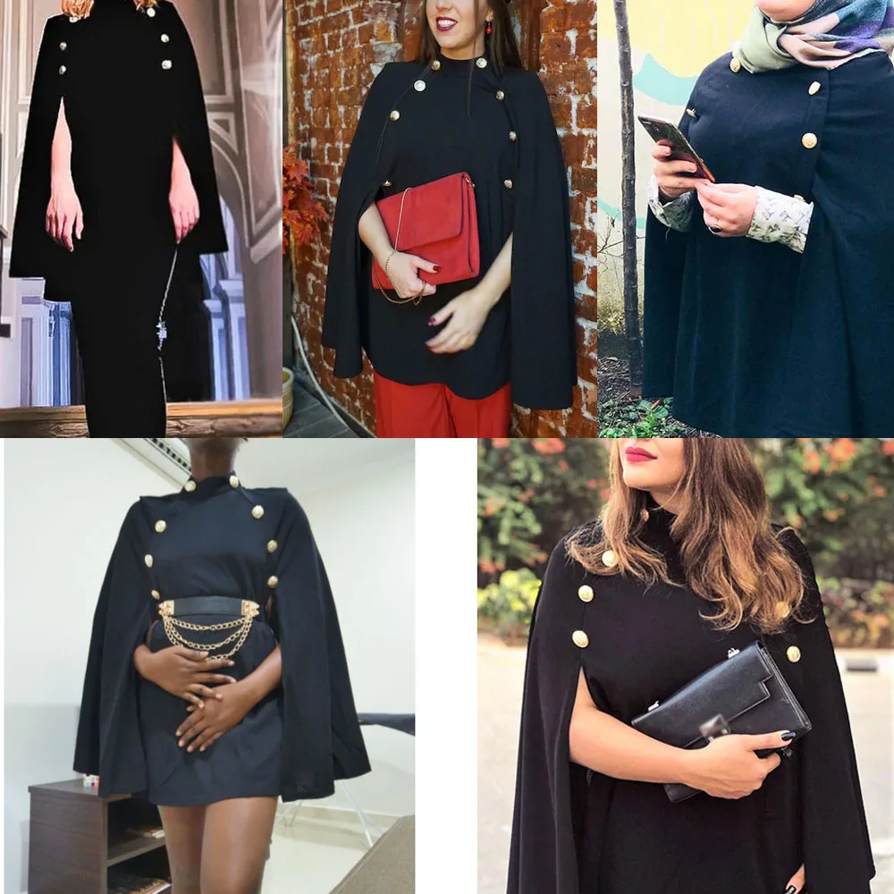 Плащ в британском стиле с воротником, модная черная двубортная шаль, рукава летучей мыши с трещинами Без ремня.