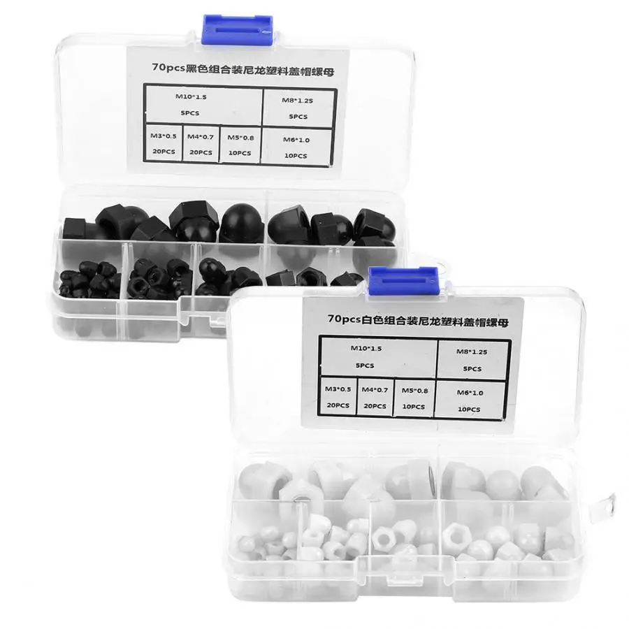 70 шт M3/M5/M6/M8/M10 нейлон желудь набор гаек купол шестигранные гайки
