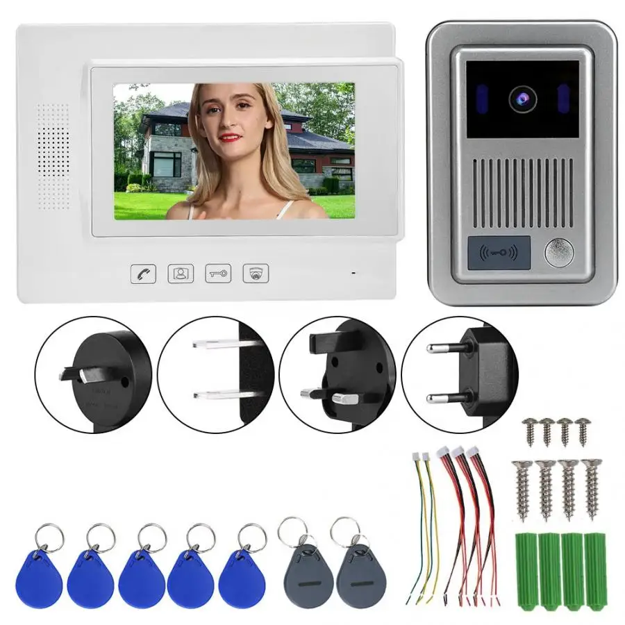 Zhudele 7inches Video Camera Door Phone Intercom System ID Card Doorbell 100-240V