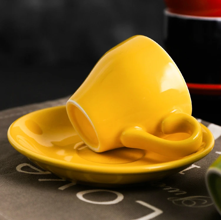 80 мл Эспрессо кружка итальянская Простая цветная Керамическая маленькая емкость чашка и блюдце набор бытовой ресторан кофейные чашки с ложкой