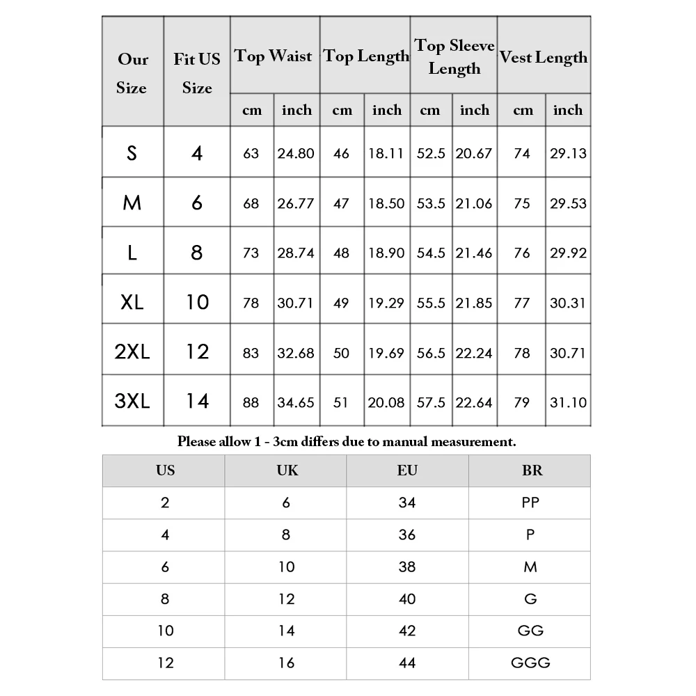 Размеры диаграммы Наши Размеры Соответствуют указанным в таблице Размеры Топ Талия Топ Длина Длина верха; Длина рукава Длина Жилет Длина См Дюймов См Дюймов См Дюймов См Дюймов S 4 63 24,82 46 18,12 52,5 20,69 74 29,16 М 6 68 26,79 47 (Европа) 18,52 53,5 21,08 75 29,55 L 8 73 28,76 48 18,91 54,5 21,47 76 29,94 XL 10 78 30,73 49 19,31 55,5 21,87 77 30,34 2XL 12 83 32,7 50 19,7 56,5 22,26 78 30,73 3XL 14 88 34,67 51 20,09 57,5 22,66 79 31,13