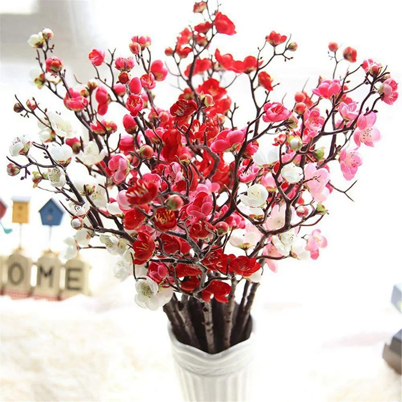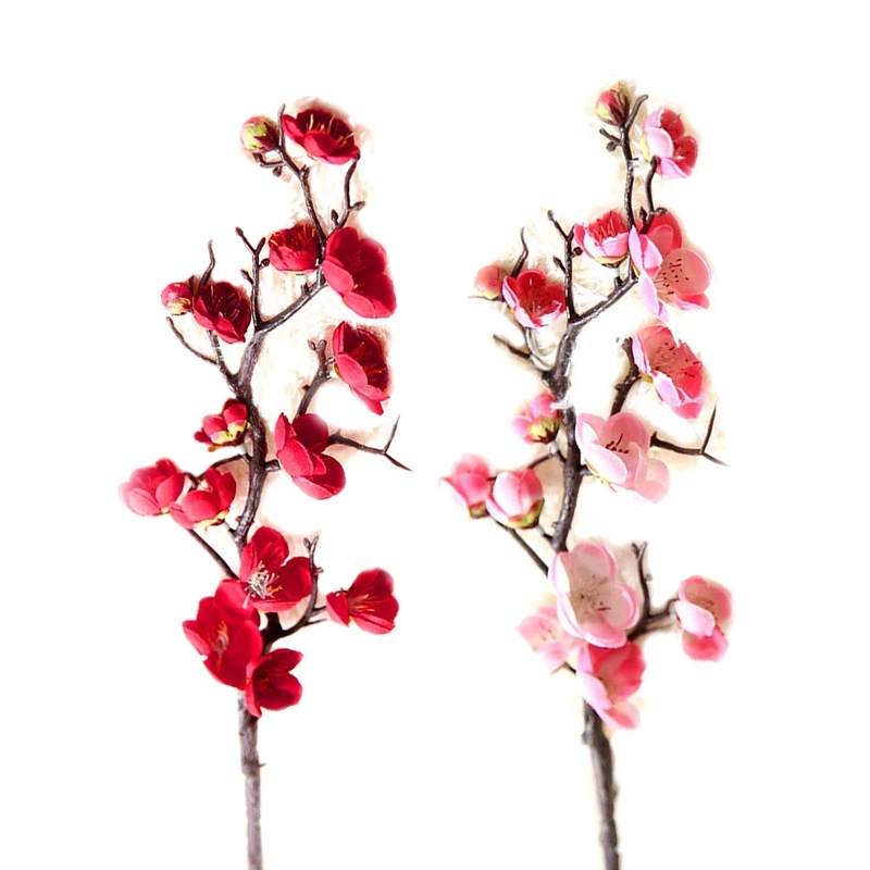 2 шт. 15-head искусственный цветок сливы: 1 шт Розовый Красный и 1 шт розовый