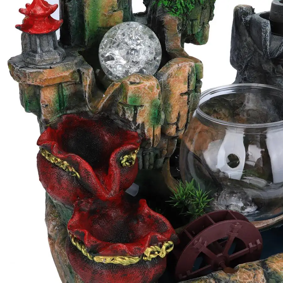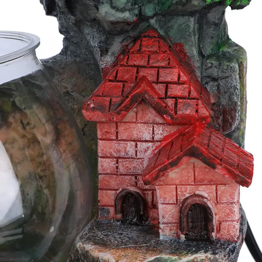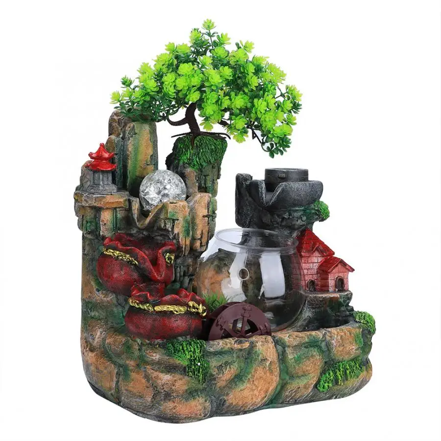 Есть деревья и скалы, протекающие через фонтан, очень реалистичные. Красочный светильник и уникальная форма делают Настольный фонтан идеальным для украшения. Детальная резьба и идеальный размер подходят для украшения офиса, гостиной или спальни. Вы можете кормить золотую рыбку в нижней круглой миске, очень практичный и интересный, хороший домашний декор. В высокого качества полимерного материала гарантирует, что фонтан будет долговечный и длительным сроком службы.