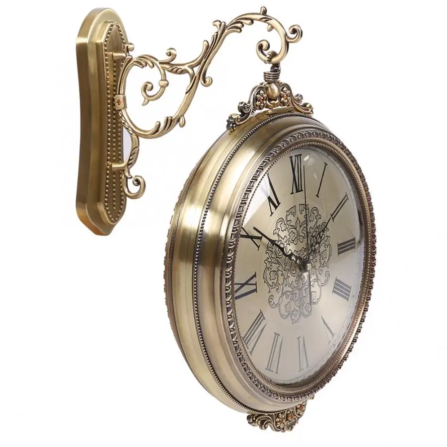 Уникальный циферблат часов в римском и арабском стиле из цельного дерева и сплава с двойными боками. 360 ° вращается под разными углами и большими удобными для чтения числами. Тихий, тихий, не тикающий механизм для плотного сна. Ретро двухсторонние подвесные настенные часы идеально подходят для гостиных, лобби, веранды и коридора и т. Д. Изготовлен из высококачественного сплава, покрытого медью и твердой древесиной, прочный и прочный, легко моется.