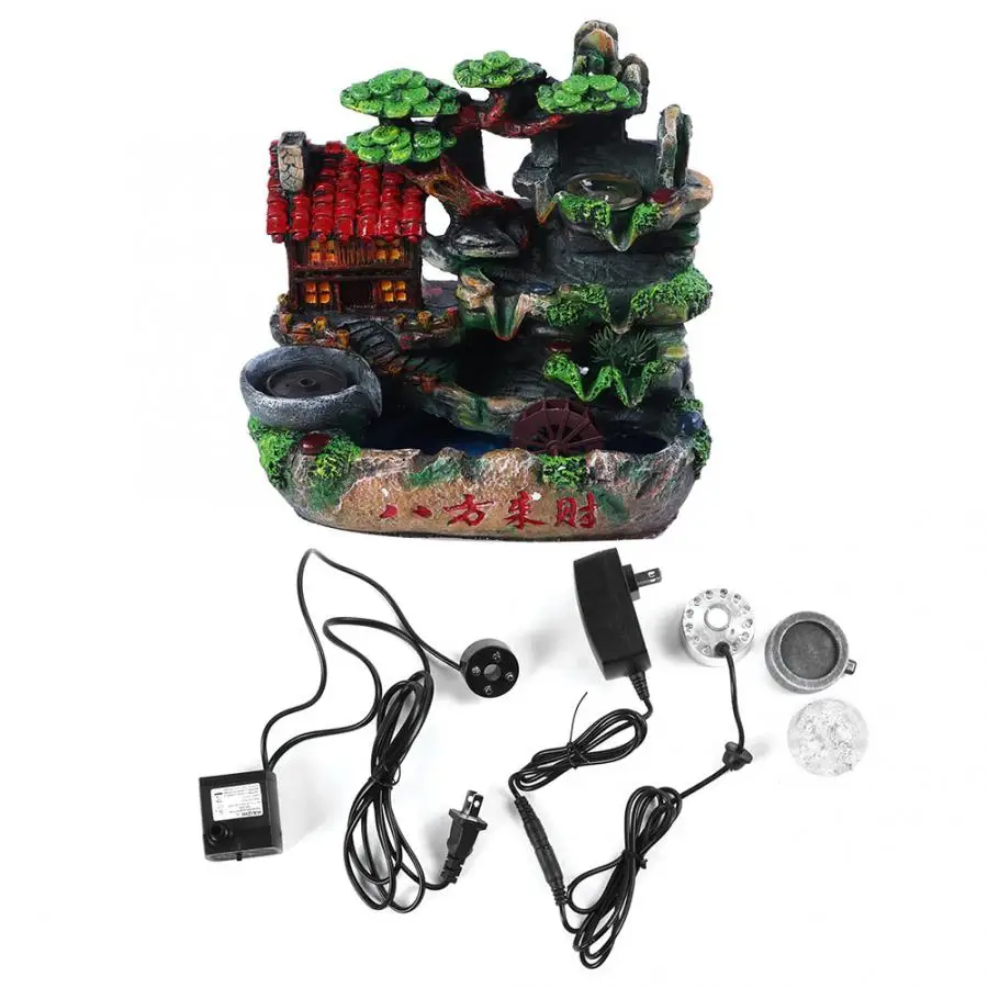 Изготовлен из высокого качества полимерного материала, который гарантирует, что фонтан будет долговечный. Красочный светильник и уникальная форма делают настольный фонтан идеальным украшением. Есть дерево, скалы и трава, струящаяся вода течёт через фонтан, реалистично. Подходит для размещения в гостиной, спальне, кофейне и других местах, которые вы хотите украсить. Тщательная резьба, тонкое мастерство и красивый цвет делают его прекрасным подарком для ваших друзей.
