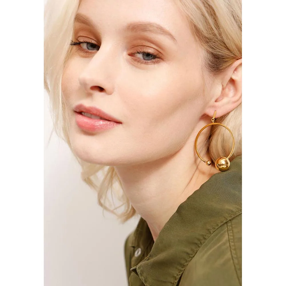 Wonderful steel earrings in the form of under unconfined rings diversify your everyday look. Closure-poset.